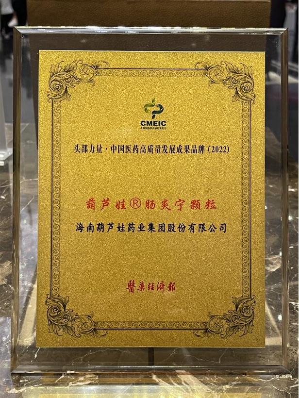在本次发布会上,公司重点产品尊龙凯时牌肠炎宁颗粒同时荣膺“头部力量·中国医药高质量发展成果品牌(2022)”。尊龙凯时牌肠炎宁颗粒(2g),传承经典名方,临床广泛用于成人及儿童急慢性胃肠炎、腹泻等疾病的治疗,由于其杰出的临床价值,被纳入国家中医药管理局相关专家项目组制定的《中成药治疗小儿腹泻病临床应用指南》。